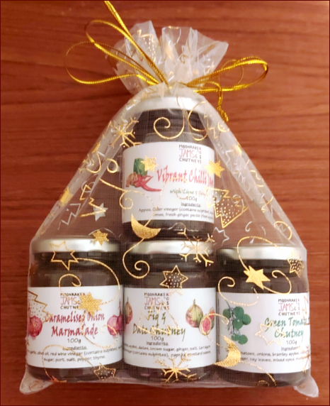 Each bag contains 4 x 100g jars which are housed in an attractive draw string bag.